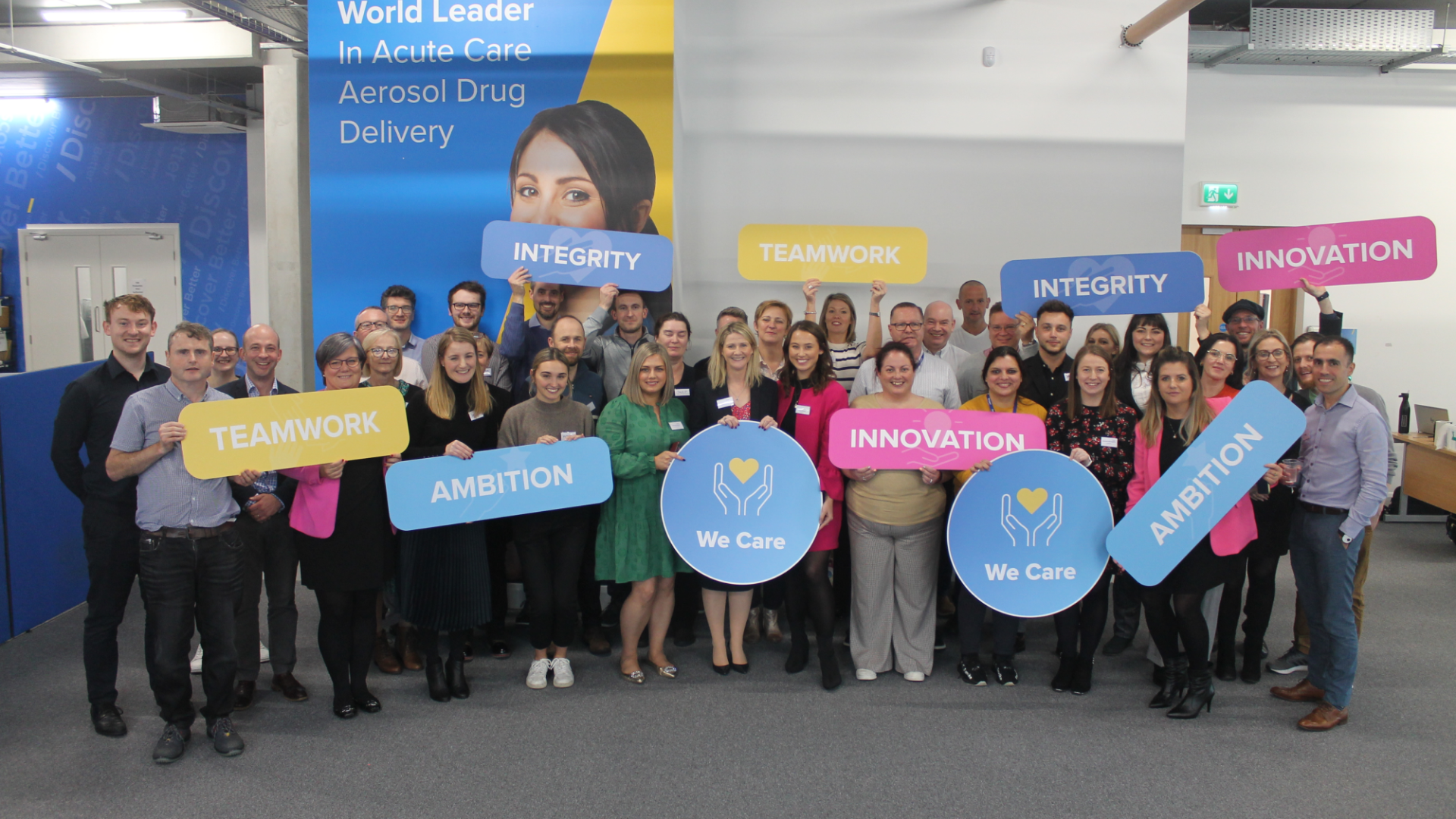 At Aerogen, we have a shared purpose to transform patient care. Why we do what we do is very simply because ’We Care’. We foster a caring and inclusive culture where our leaders care about the growth, development and wellbeing of our people, while empowering their teams to be the best they can be. Our culture of ‘We Care’ positively supports our interactions with each other, our customers, patients, partners and the communities in which we operate. This provides the framework for our four core values of Integrity, Teamwork, Innovation and Ambition.
